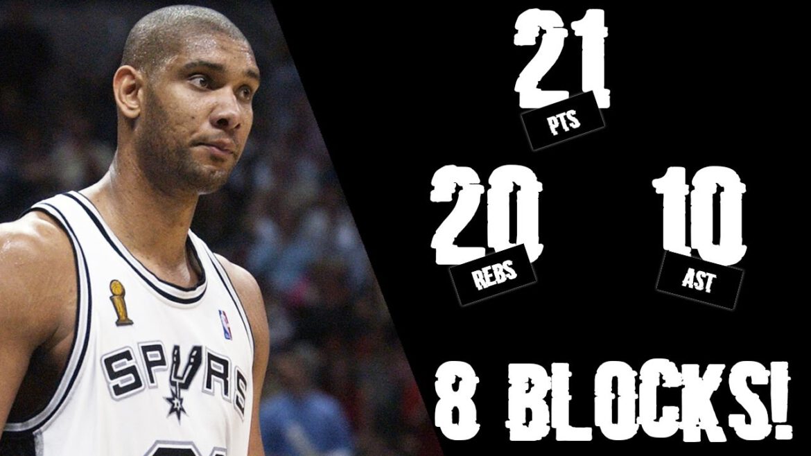 In Game 6 of the 2003 NBA Finals, Tim Duncan officially recorded a triple double by having an insane statline: 21 points, 20 rebounds, 10 assists and 8 blocks.