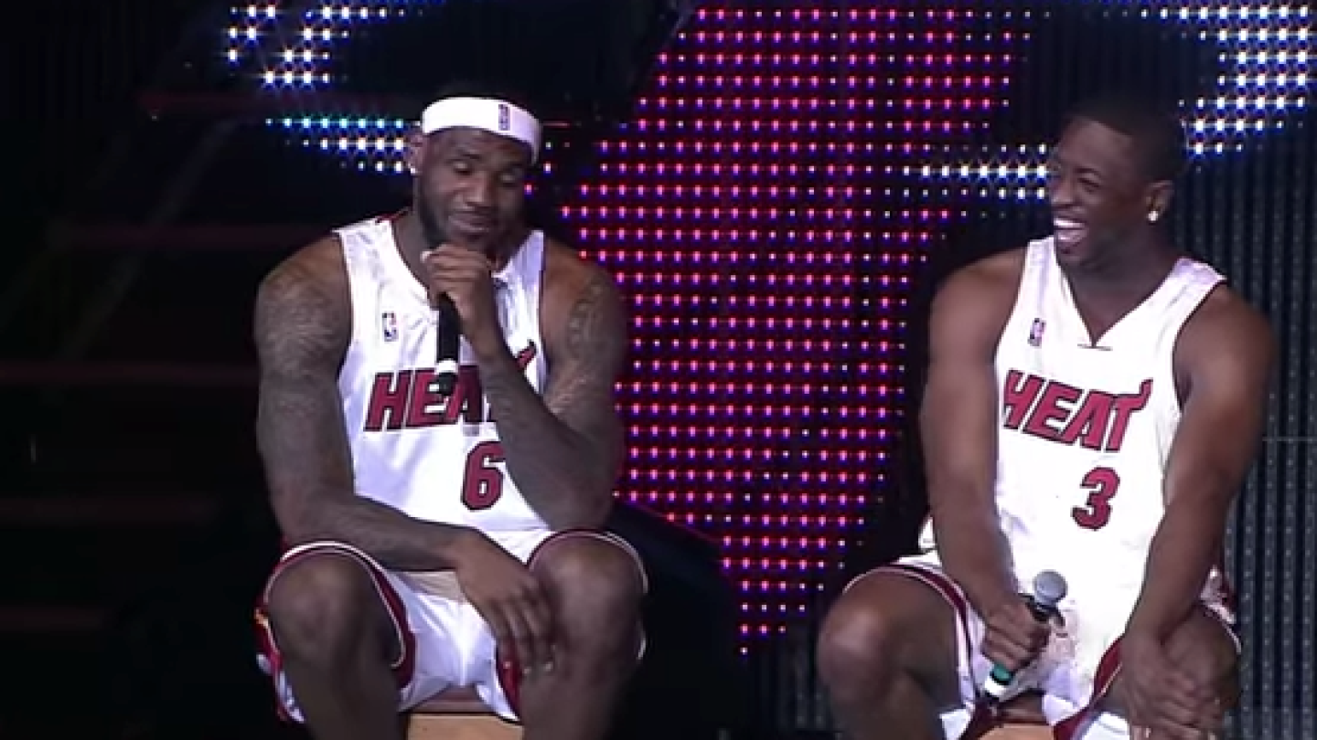 The hype surrounding the team became even more real when the Heat hosted a welcome party for the newly-formed Big 3. It was here that LeBron teasingly proclaimed his intention to bring home more than seven championships to Miami.