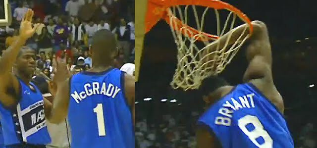 About two months ago, Team Flight Brothers acquired and posted an extremely rare and amazing video of an unseen Dunk Contest between Kobe Bryant and Tracy McGrady at Magic Johnson’s Midsummer Nights in 1997.