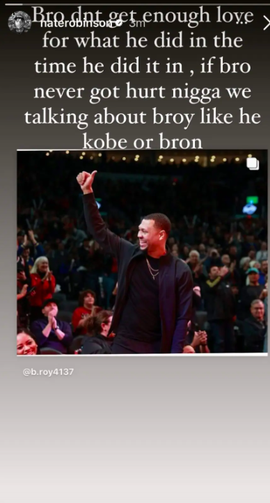 “Bro [Brandon Roy] doesn’t get enough love for what he did in the time he did it in. If bro never got hurt, n—a, we’d be talking about B-Roy like he’s Kobe or Bron,” Robinson on Instagram.