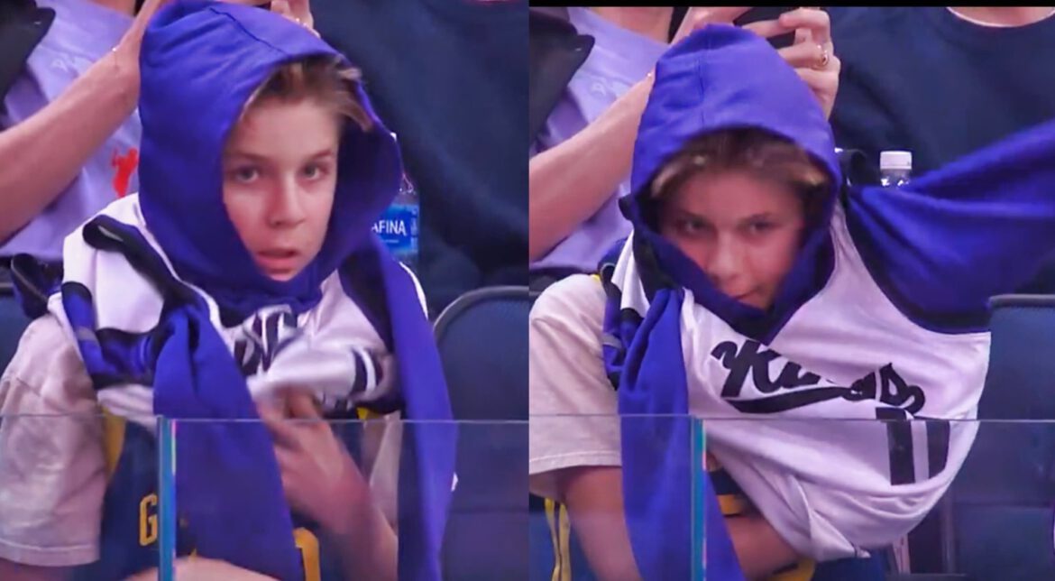 During the Golden State Warriors’ 129-99 loss to the Sacramento Kings on Sunday, cameras caught a young fan switching his Warriors jersey for a Kings hoodie.