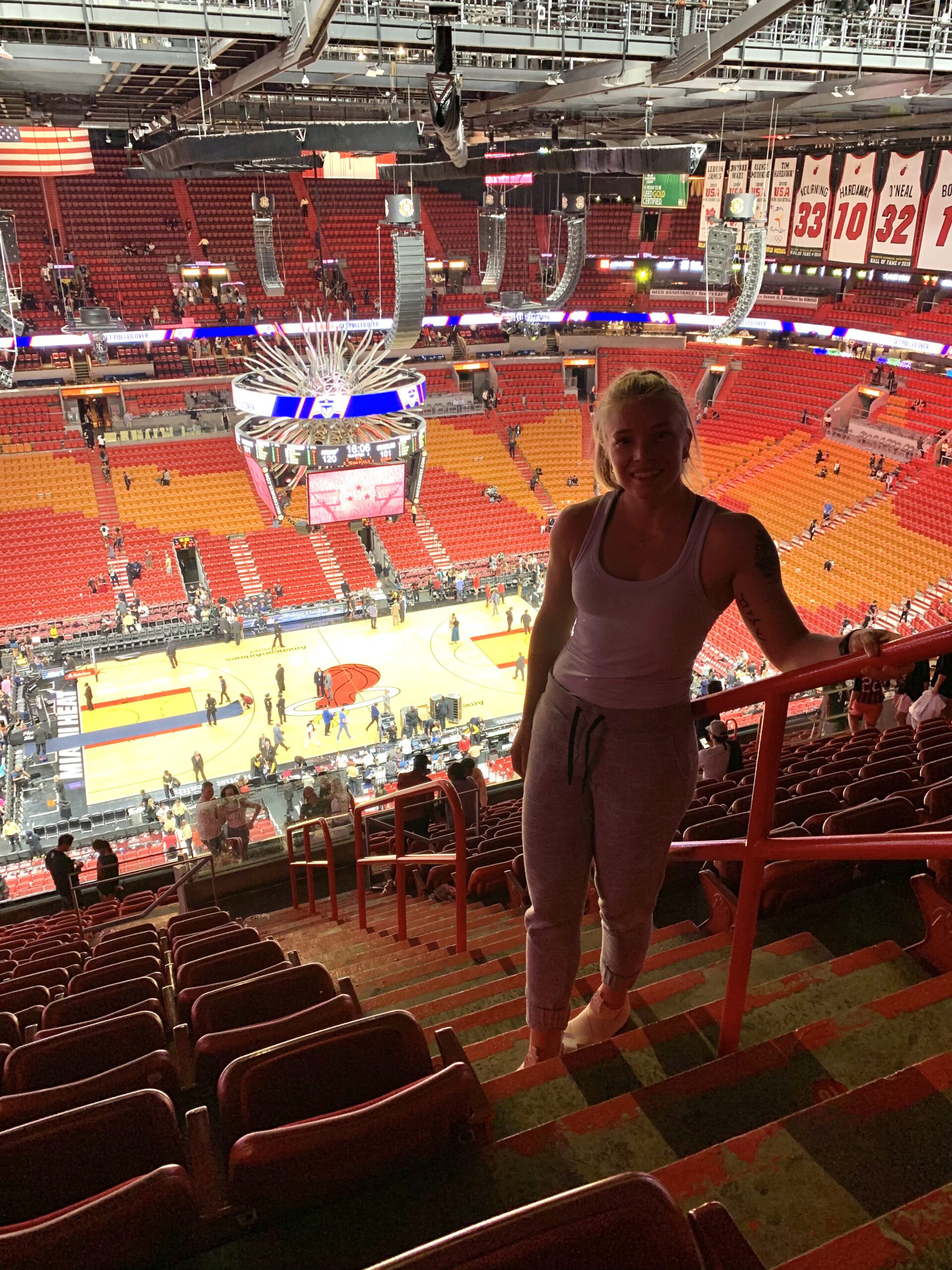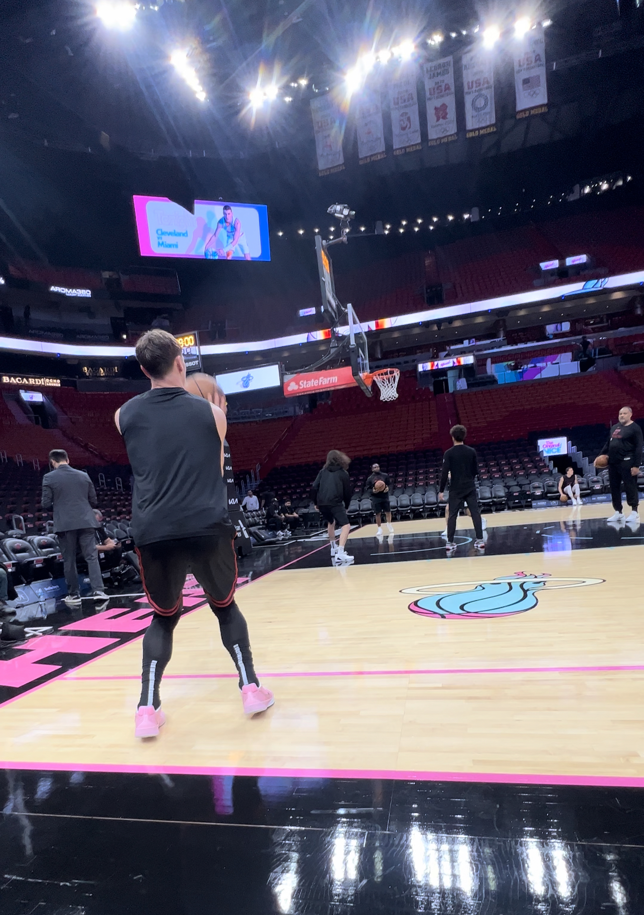 Nochmal zurück nach Miami. Bei den Heat darf man schon 3,5 Stunden vor Tip-Off als Media Member in die Arena. Dadurch hatte ich die Möglichkeit, den Miami Vice Court in voller Pracht zu sehen, ohne dass irgendwer auf dem Court stand. Fast fünf Jahre kam er nicht mehr zum Einsatz. Ich liebe die Miami-Heat-Vice-Collection. Ich war kurz versucht, mir ein Tyler Herro Miami-Heat-Vice-Jersey zu kaufen, aber bei stolzen 120 $ plus Tax musste ich für den Moment erstmal nein sagen.