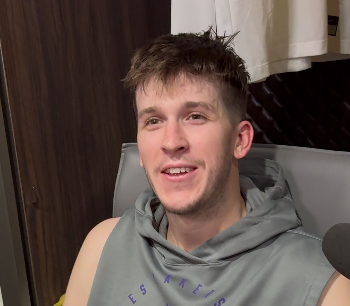 Ich war sehr beeindruckt, wie gut Austins Handles sind. So viele toughe Crossovers, gefolgt von einem starken Drive zum Korb oder einem Step-back-Dreier mit cleanem Abschluss. Austins Lebensgeschichte ist auch eine absolute Feel-Good-Story. UnDrafted – direkt zu den Lakers – und sich dann als Starting-Five-Guy etabliert. Einfach schön.