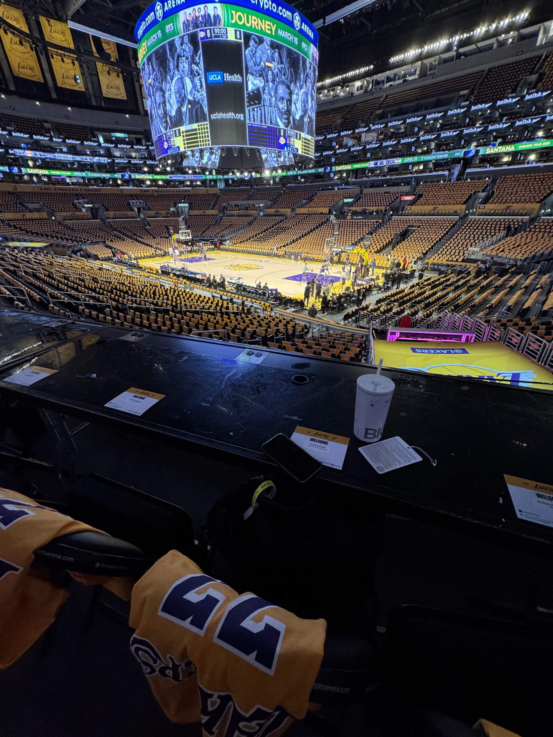 The sight of the gold and purple-filled arena was simply magical. Every single yellow T-shirt jersey was carefully draped over the seats, perfectly displaying the purple #77 on the back.