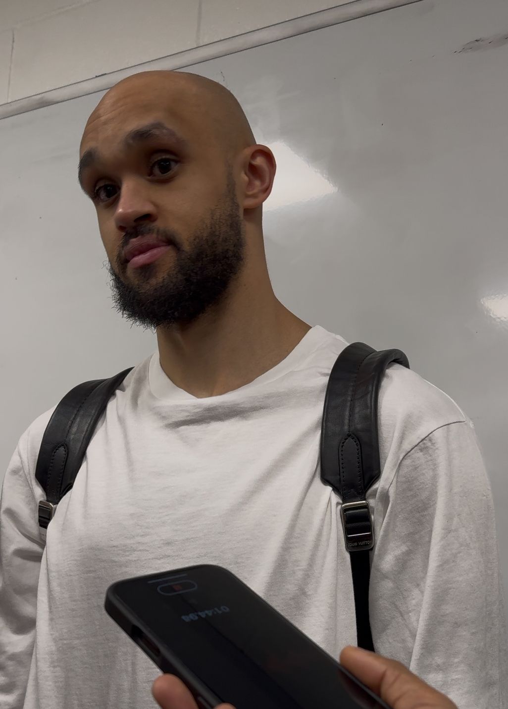 Hier finde ich spannend zu sehen, wie Derrick im Vergleich zu Jayson in der „Wir-Form“ redet. Er hat so eine schöne Aura, immer das Team im Fokus, ähnlich wie bei Jrue Holiday oder Al Horford.
