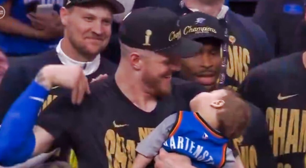 The Oklahoma City Thunder may have clinched their first NBA title in franchise history, but it was Isaiah Hartenstein’s baby son, Elijah, who captured hearts during the postgame celebration.