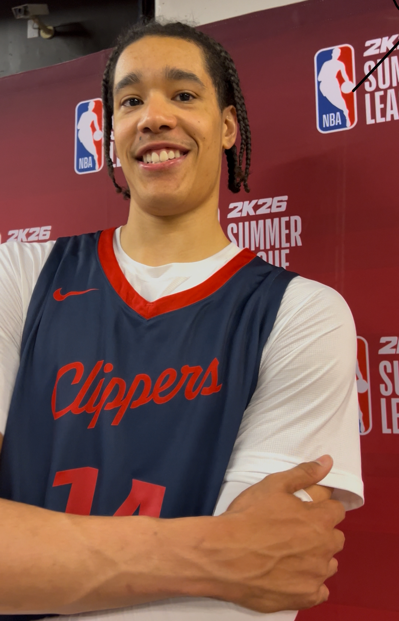 From one German to a Swiss guy — Yanik Konan-Niederhäuser. Yanik was drafted 30th overall by the Clippers this year. From Game 1 to Game 2, you could already see major progress — and in the game against the Lakers on my last day, he really showed out.