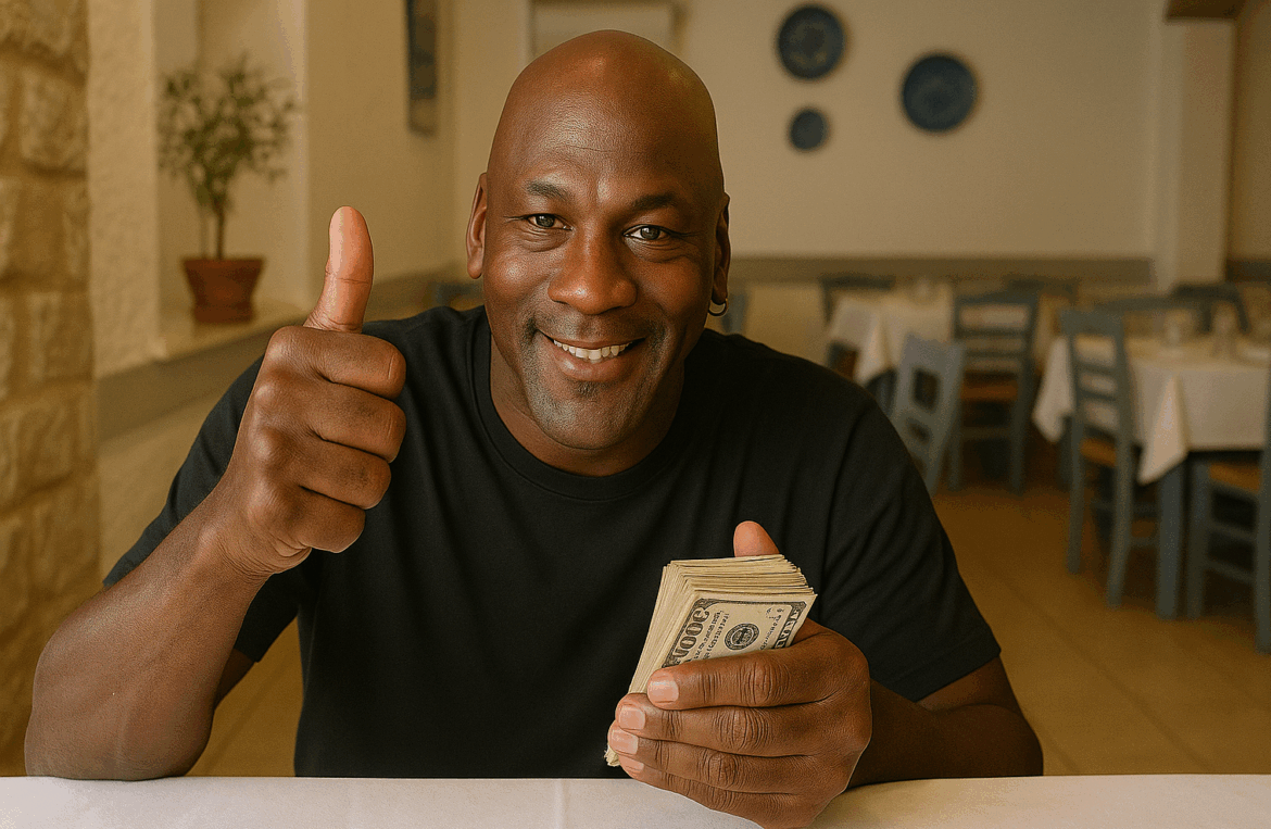 When Michael Jordan does something, it’s rarely subtle, and his recent trip to Greece was no exception. The NBA icon, global brand mogul, and cultural legend stunned staff at the upscale Papaioannou restaurant in Vouliagmeni by leaving a €10,000 tip after a private dinner celebrating the 40th anniversary of the Jordan Brand.