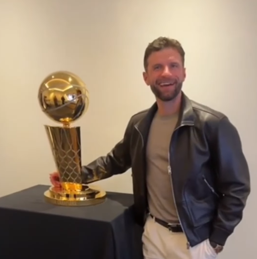 Bereits vor dem Tip-Off hatte Müller für Schmunzeln gesorgt, als er sich mit der Larry-O’Brien-Trophäe, dem Meisterpokal der NBA, fotografieren ließ. Mit einem Augenzwinkern kommentierte er: