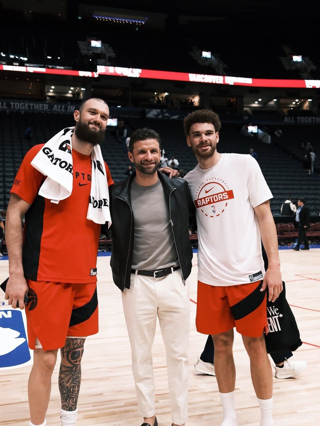 Der langjährige Bayern-Star, der seit Sommer für die Vancouver Whitecaps in der Major League Soccer aufläuft, besuchte gemeinsam mit seinen MLS-Teamkollegen erstmals ein NBA-Spiel, und das gleich von den besten Plätzen: Courtside in der Rogers Arena.