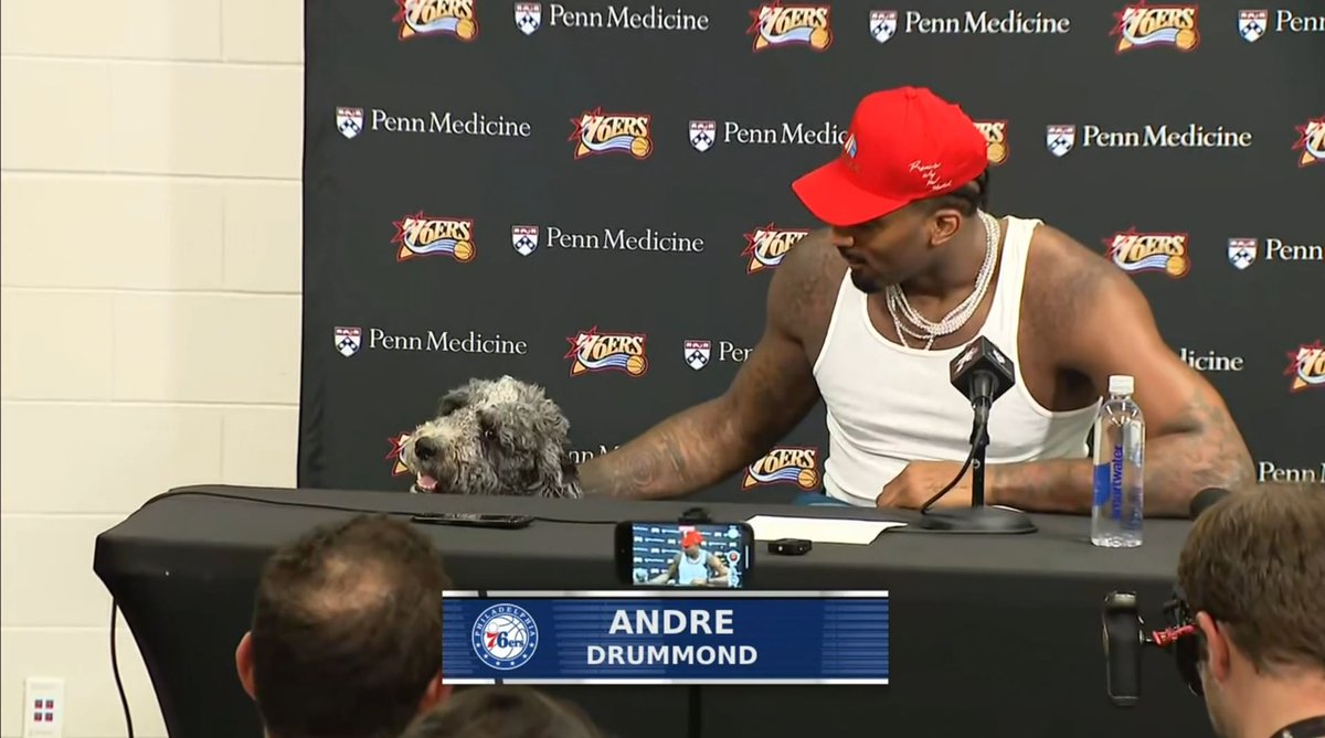 Philadelphia 76ers center Andre Drummond made many people smile during Sunday night’s postgame press conference by bringing his dog, Bob Marley, to the podium following the team’s loss over the Detroit Pistons.