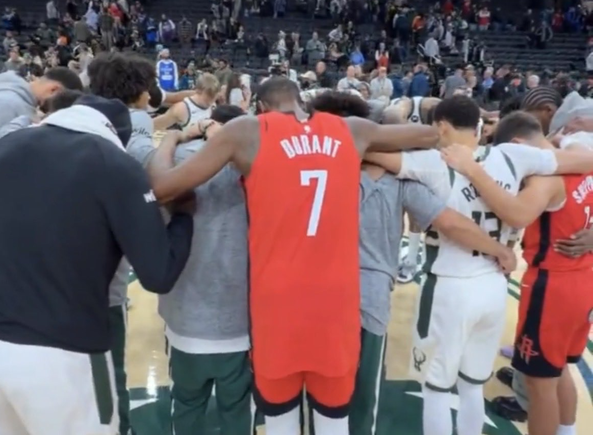 The Milwaukee Bucks have made their postgame prayer circle a staple of team culture, and they’re extending the invitation to opponents. After Sunday’s game against the Houston Rockets, NBA stars Kevin Durant, and Reed Sheppard joined Bucks players in a moment of prayer and reflection at center court.