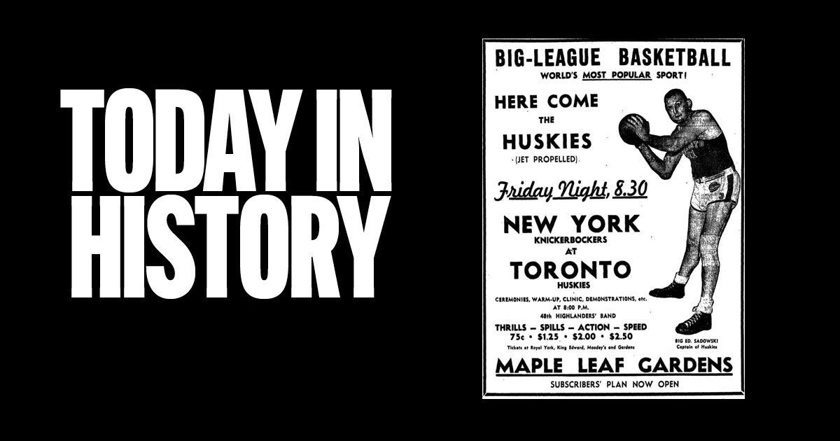 On November 1, 1946, at the Toronto Huskies’ home court in Maple Leaf Gardens, history was made as the Huskies took on the New York Knickerbockers in the league’s inaugural game. Interestingly enough, any fan taller than Toronto’s 6-8 center George Nostrand was able to get in for free.